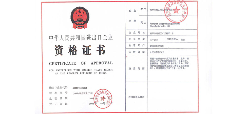 湖南精正設(shè)備制造有限公司成立;2月,與清華大學(xué)材料科學(xué)工程系聯(lián)合研制屬于國家863計劃項目的陶瓷膠態(tài)注射成型機;10月23日,獲得國家進出口經(jīng)營權(quán)。